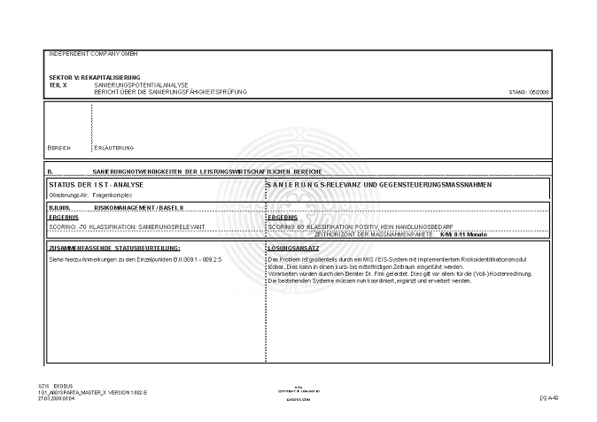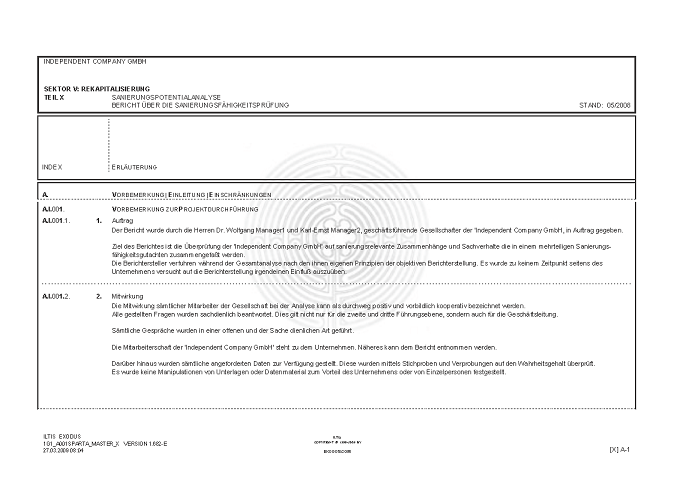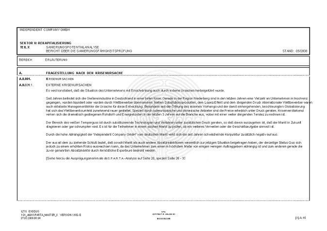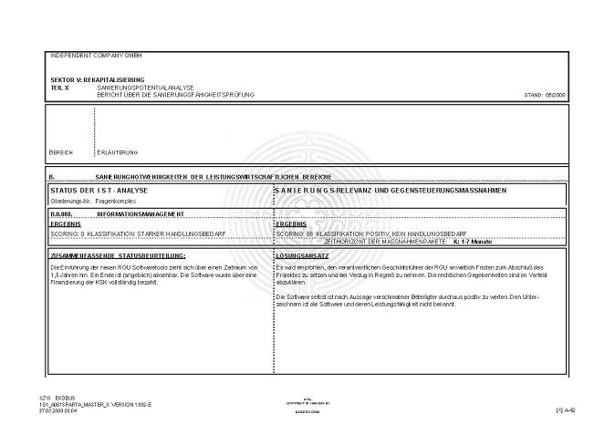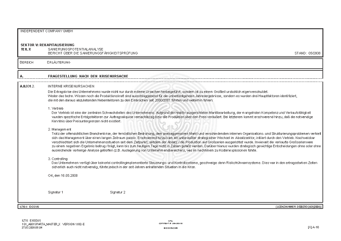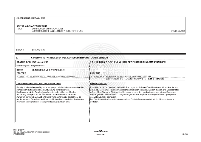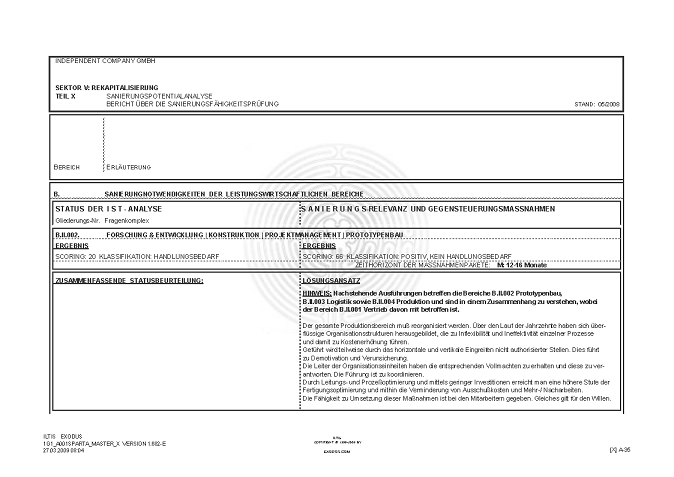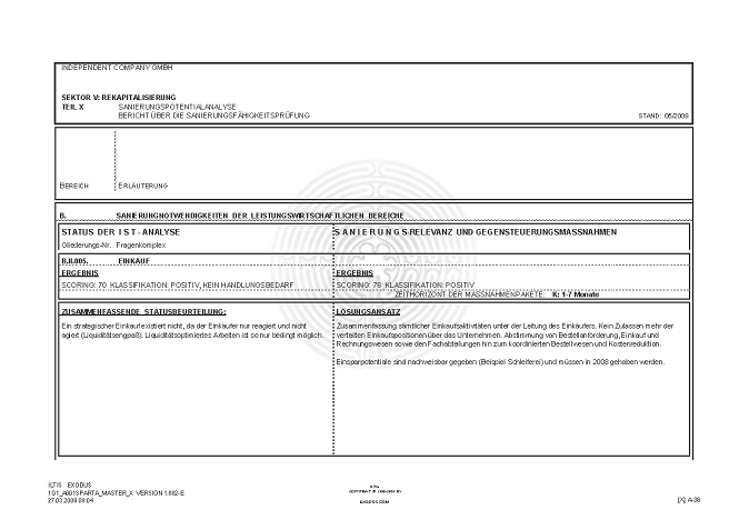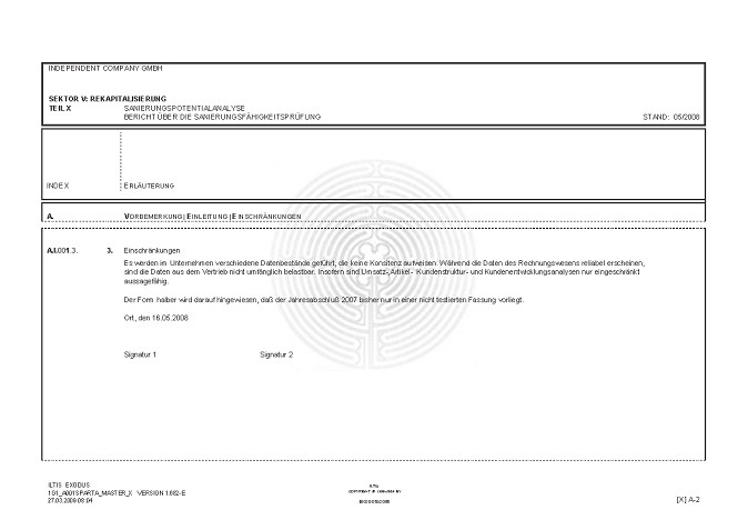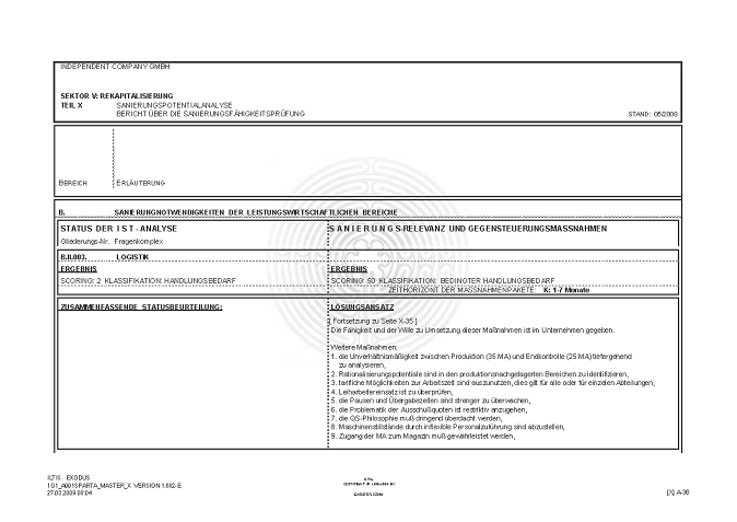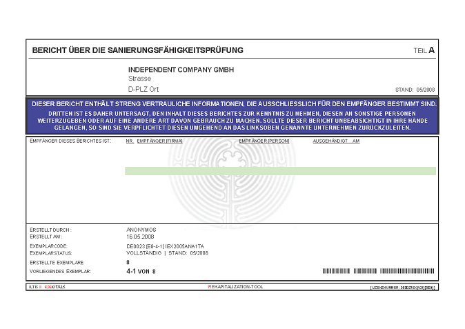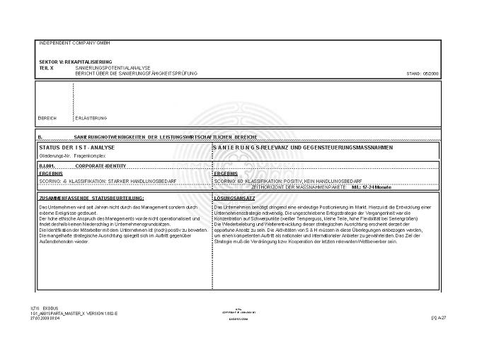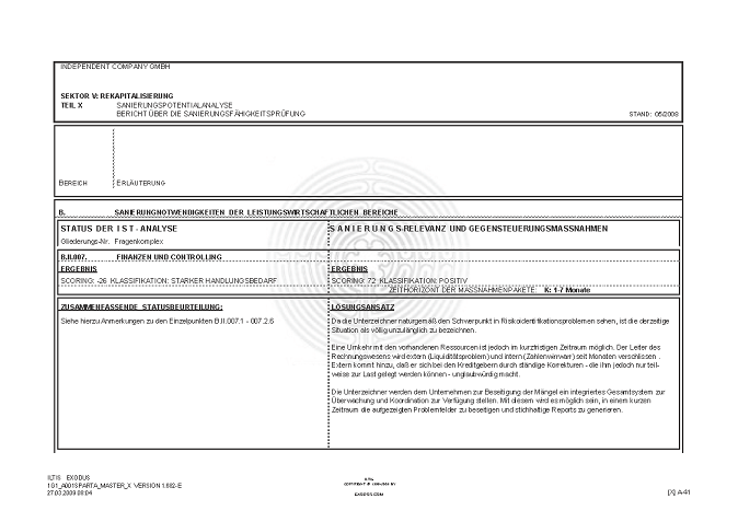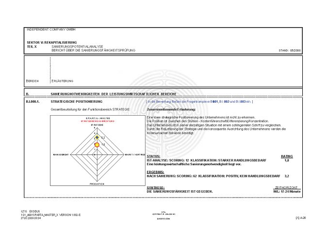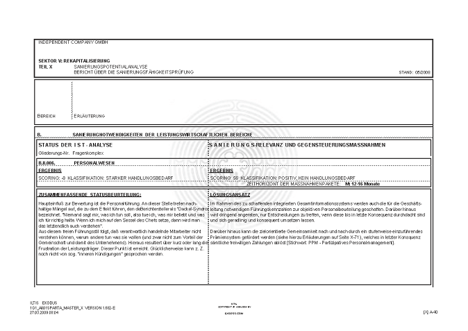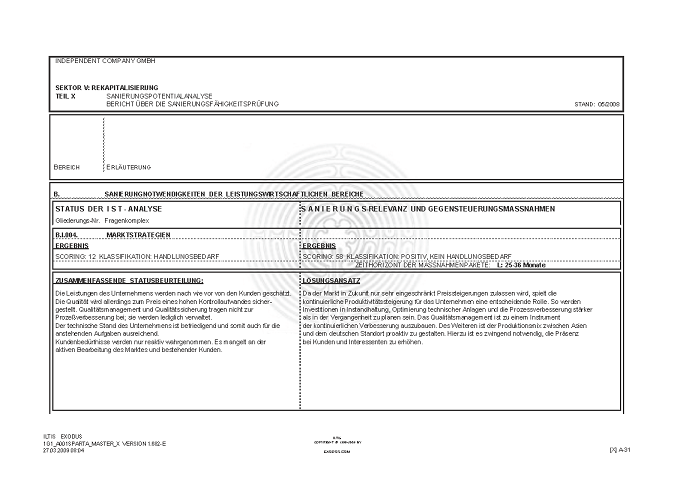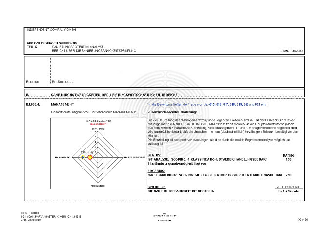 BERICHT ZUR SANIERUNGSFÄHIGKEIT MITTELS "S.P.A.R.T.A.-Analyse"© INKL. INSOLVENZPROGNOSE [AUSZÜGE]